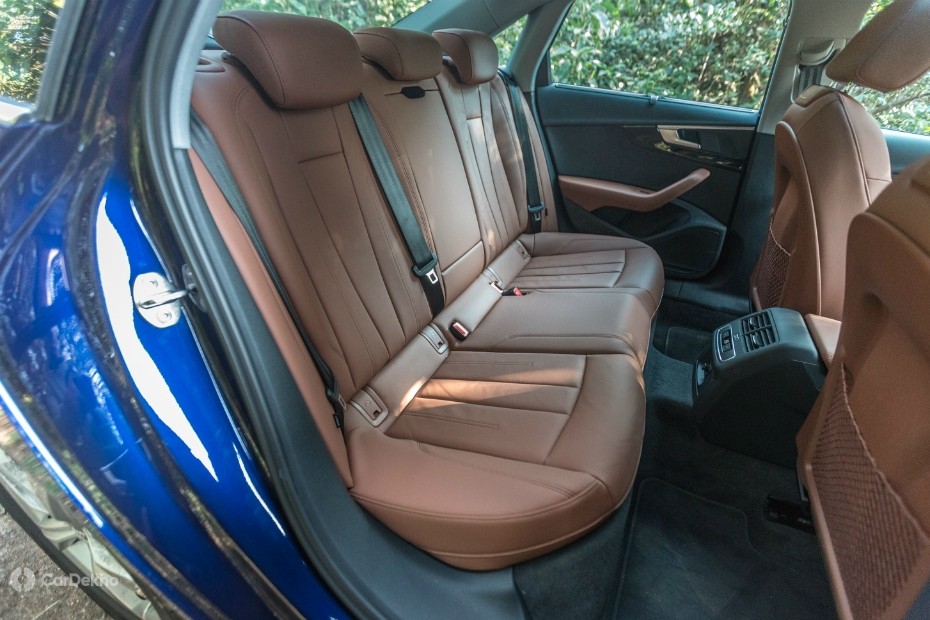At the rear, the A4 remains a 4-seater. The huge manual tunnel in the centre means that the center seat is merely fit for a small child. Notwithstanding, six-footers can easily accommodate themselves on either side in relative condolement and you continue to go separate climate control buttons for the rear cabin. There are dominicus shades as well that will allow y'all to block the sun and maintain your privacy while being driven around the city. The rear seats can be folded down, but y'all can too lock these so that a valet doesn't gain admission to your boot. For those of who utilize the boot often, there'due south 460 litres of boot space. The spare wheel is tucked underneath the boot flooring of the A4, and then you can make use of all the available space.